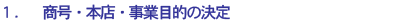 | まず、設立する会社の商号(社名)、本店所在地(住所)、事業目的(事業内容)を決定します。 | |